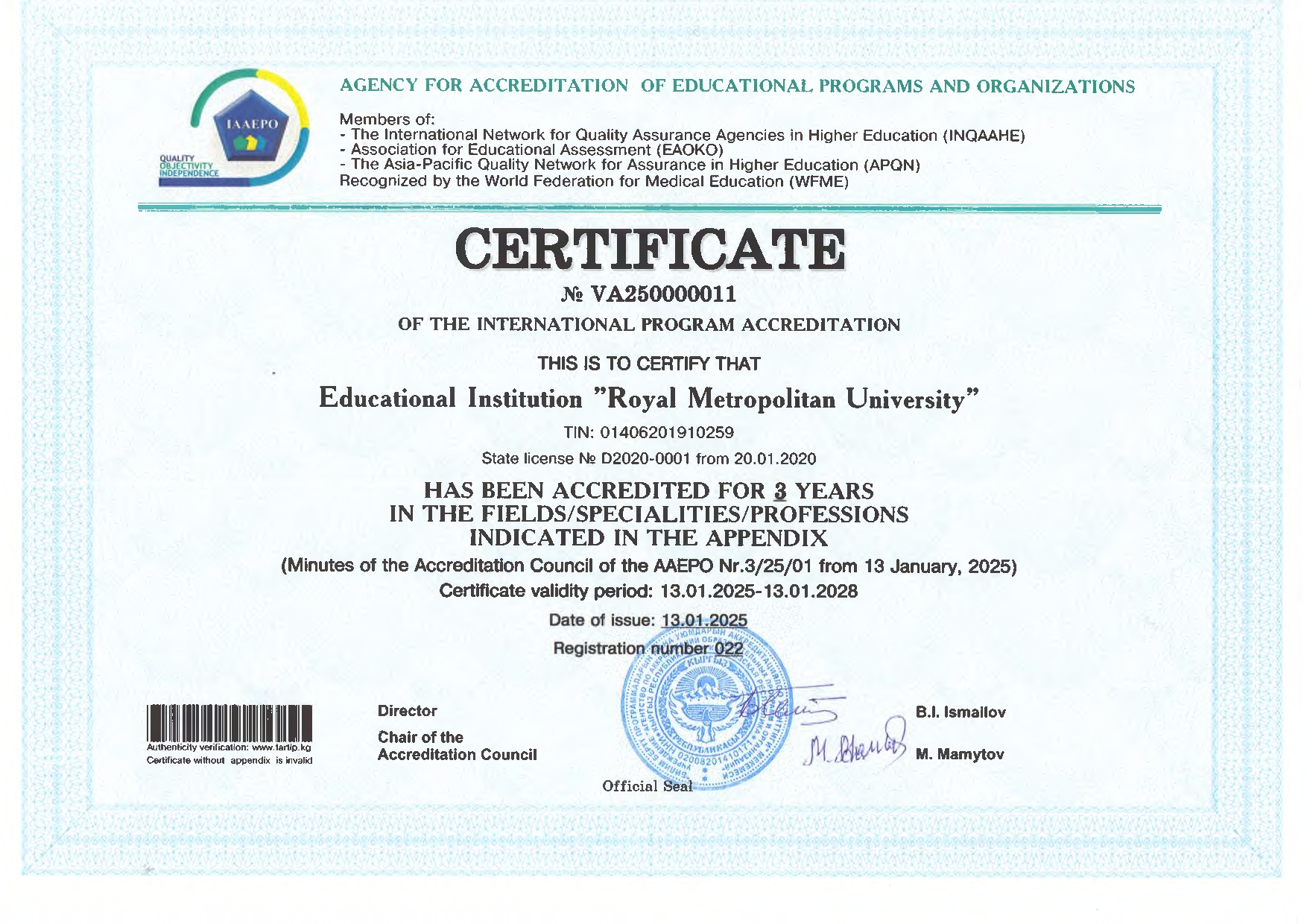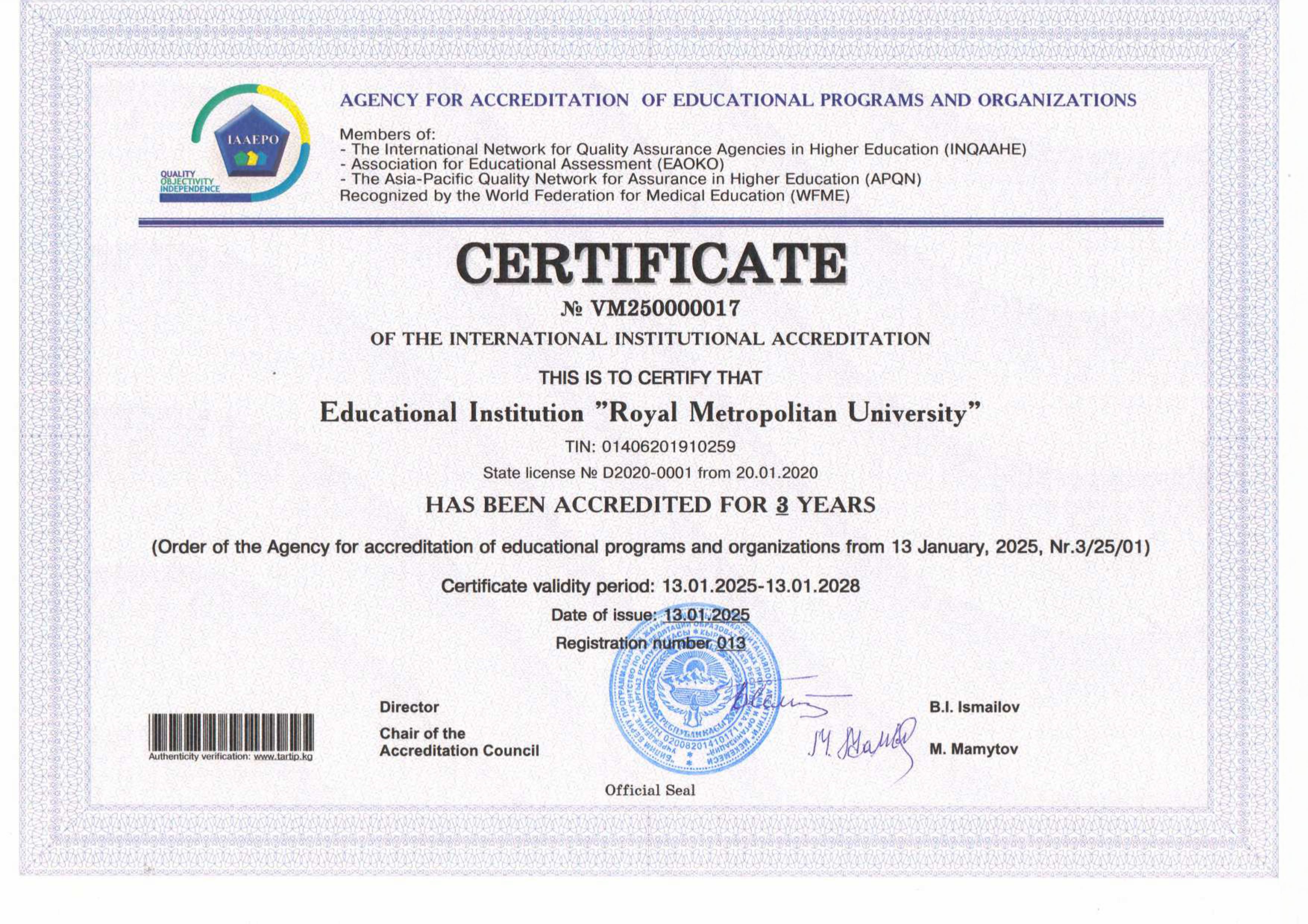 Founded with a vision to redefine medical education in Central Asia, Royal Metropolitan University